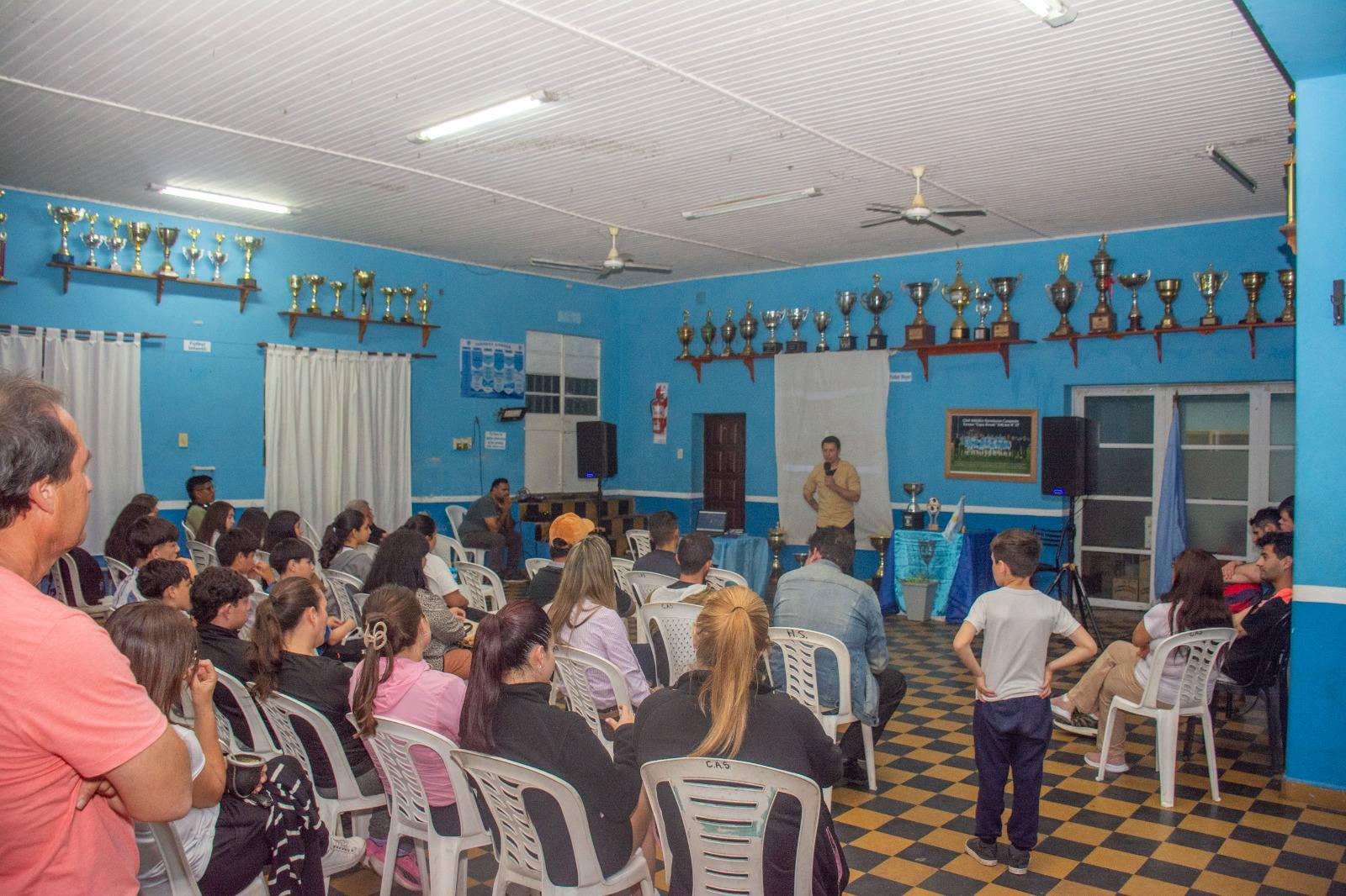 La jornada se realizó en el Club Sarmiento y contó con la participación especial de Marcelo Aguirre, ex futbolista profesional de nuestra ciudad, quien compartió su valiosa historia de vida y superación. Su testimonio permitió abrir un espacio de reflexión sobre factores protectores y de riesgo en la salud mental, frustración, violencias y valoración personal, generando un impacto positivo en jóvenes y adultos presentes.