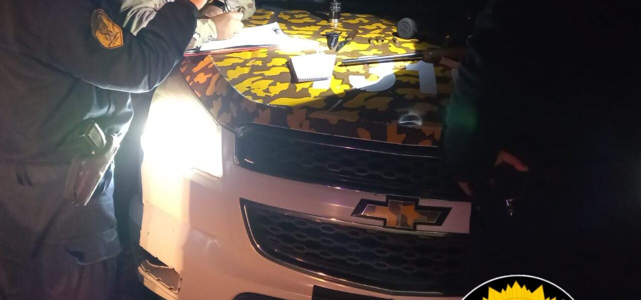 En la fecha en horas de la madrugada personal policial, mientras se encontraban realizando recorrida por Distrito Chilcas, se detiene la marcha de un vehículo marca Chevrolet C-10, conducido por un ciudadano mayor de edad domiciliado en nuestra ciudad, acompañado por otros dos masculinos, observando los uniformados que el conductor, portaba un arma de Fuego, desenfundada lista para ser usada, tratándose de un fusil 308, que contaba con mira telescópica, visor nocturno, y linterna táctica. Ante la evidente Acción de Caza, se efectuó Acta de Constatación procediendo al secuestro del arma descripta y cartucheria.