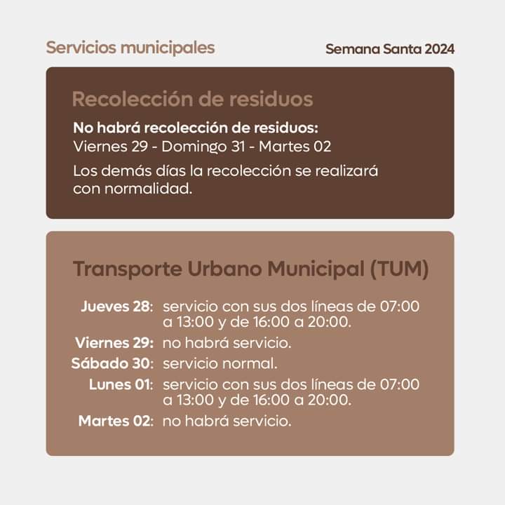 Compartimos la información de los servicios municipales durante Semana Santa.