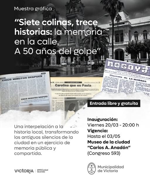 En el marco del 50° aniversario del quiebre institucional de 1976, esta muestra gráfica propone una interpelación a la historia local, transformando los antiguos silencios de la ciudad en un ejercicio de memoria pública y compartida.