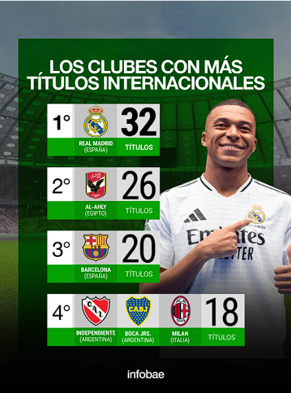 Tras el título de Real Madrid, así quedó la tabla histórica de clubes más ganadores del mundo: Boca e Independiente, en el Top 5