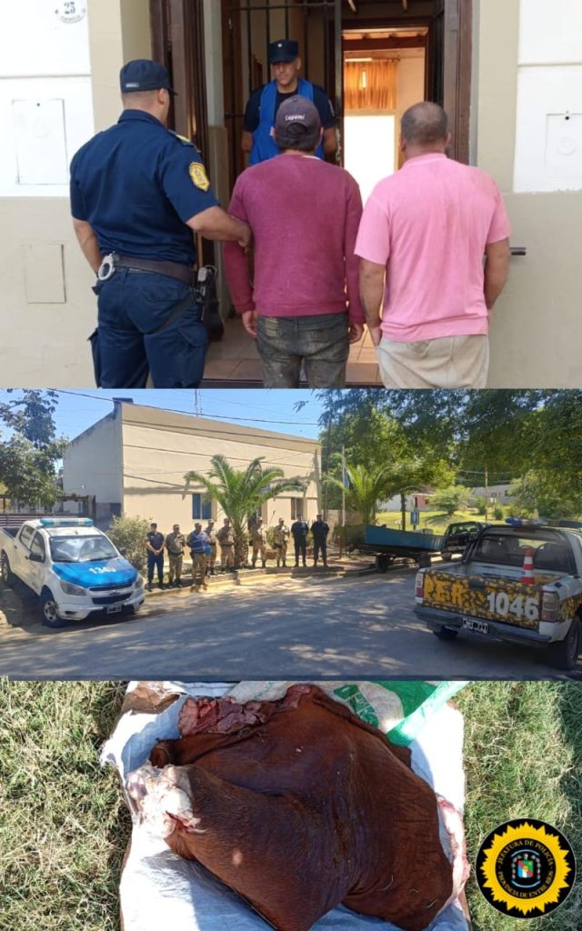 Los demorados, de 32 y 37 años, ambos residentes del Quinto Cuartel de Victoria, fueron trasladados a la Jefatura Departamental donde quedaron detenidos bajo el cargo de abigeato.