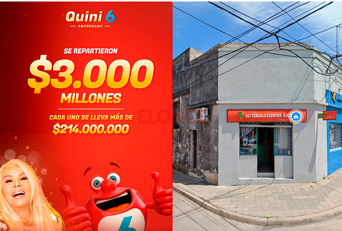 Una agencia de tómbola de Entre Ríos vendió una de las boletas que ganó $214 millones en el sorteo aniversario del Quini 6 que contó con un pozo extraordinario de $3 mil millones en la modalidad Siempre Sale. Se trata de la agencia Nº 1247 “El Taty” de la localidad de Victoria, ubicada en la esquina de calles Perón y Chacabuco.