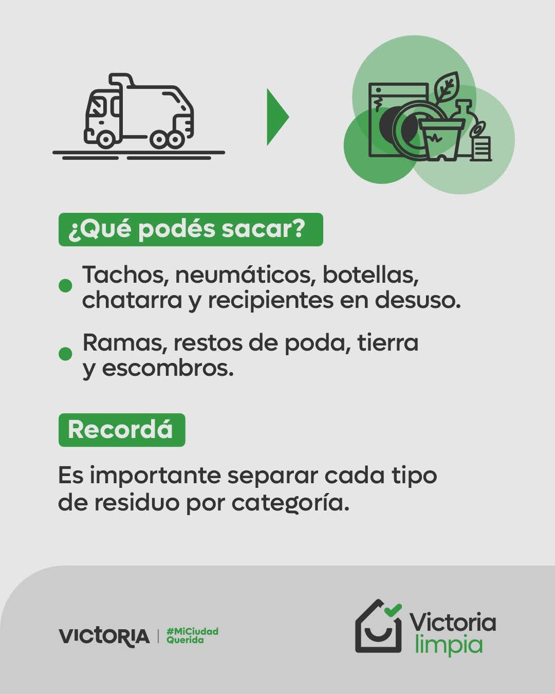 ✅ También, podés sacar ramas, restos de poda, tierra y escombros.