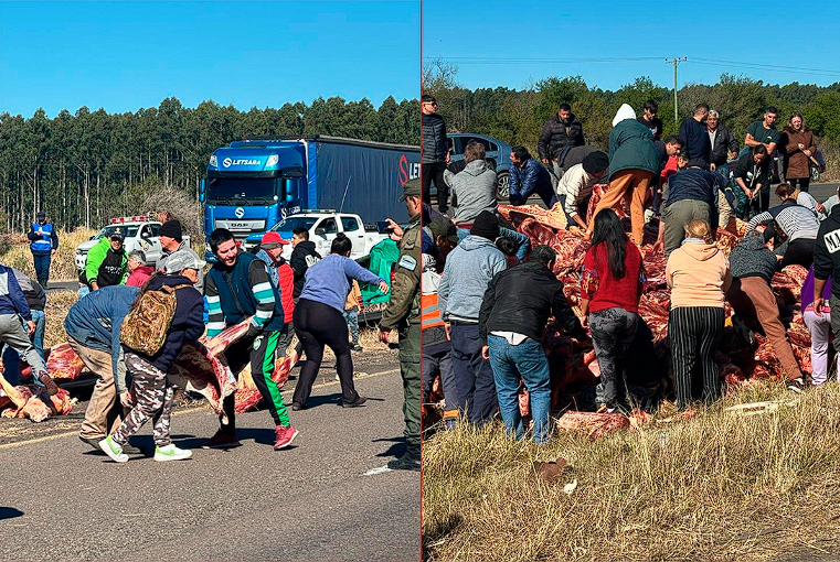 “La otra parte de la carga que quedó sobre la banquina, que tenía pasto y restos de combustible, quedó para ser desnaturalizada; pero personas que pasaron, cuando se levantó el operativo, se llevaron los restos de las medias reses”, indicó el comisario.